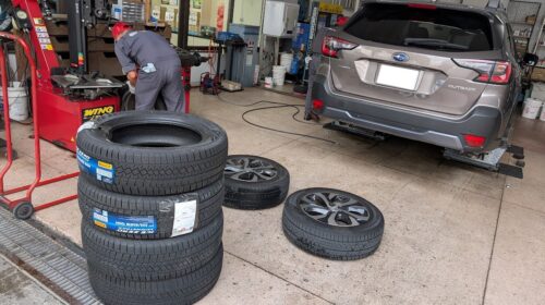 私のアウトバックは、今年が3年目で車検を受けたのですが、スタッドレスタイヤはまだ溝があるので問題なく通りました。しかしすでに3シーズンを走り切っており、スリップラインは出ていないものの以前に比べて滑りやすくなった感じがしていたので、ゲージで溝を測り、タイヤゴム強度も調べてみました。タイヤの溝は内側均4mm、真中約5mm、外側約5mmで、硬度は内側が63HA、真中が64HA、外側が64HAでした。スタッドレスタイヤの溝のリミットは4mmで、使用を避けるべき硬度が60HA以上とされていますから、替え時だったので2024年製ピレリのICE ZERO ASIMMETRICO(アイス ゼロ アシンメトリコ) 225/60R18 100H を新調しました。タイヤの交換はコスパの良い出光のPit in plusでご近所の新相模SSにお願いしました。