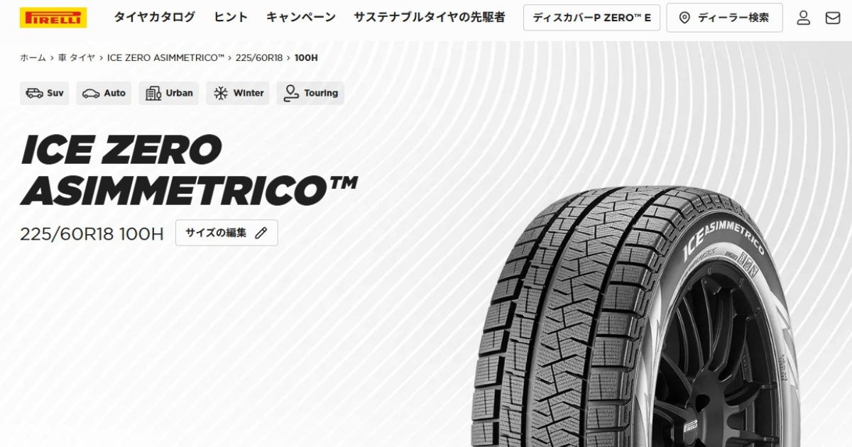 冬シーズンに入り普段は雪の降らない場所で生活をし、シーズン中に何度かスキーに出かける方であれば、夏はノーマルタイヤを履き、冬の次期だけスタッドレスタイヤに履き替えることもあるでしょう。しかし私の場合は、冬の間スキー場で4か月間過ごし、オフシーズンの間は買物で利用する程度で走行距離も伸びません。概ね雪道年間10,000kmで、乾燥路は年間4,000㎞ほどです。タイヤを預けるにしても25,000円/年かかりますし、1本のタイヤとアルミホイールの重量は約12㎏、4本のタイヤを運搬するにも体力が保てなくなったと言いますか、怪我のリスクが頭をよぎります。さて困ったもので、一般的には「スタッドレスタイヤは排水性が悪いので乾燥路では使うべきではない」と言われていますが、ピレリは比較的コンパウンドが硬いので、乾燥路でも違和感が少なく、低ボイドレシオで接地面積が広く、ハンドリング性能が向上しています。それにダブル・サイドトゥサイド・グルーブ構造といって、排水性を高めるための溝設計が施されており、ウェット路面でも安定した走行が可能なので排水性とウェット性能が良いタイヤとも言えます。もちろんノーマルタイヤに比べると摩擦抵抗も大きいので燃費は悪くなりますが、高速道路では13km/ℓは走ってくれます。市街地と山岳路では8~10km/ℓでしょうか。雪道走行が主で、乾燥路が補助的な使い方であれば、ピレリ「アイス ゼロ アシンメトリコ」は通年使用も十分に現実的と言えそうです。