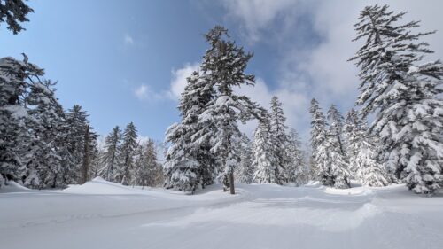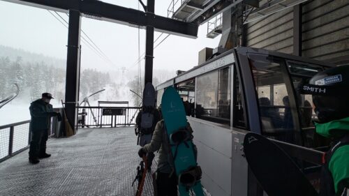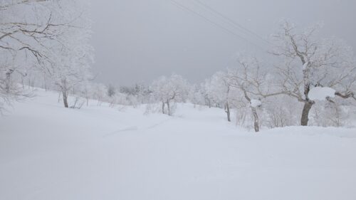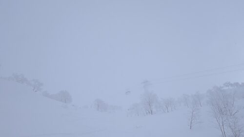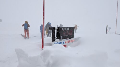 8時15分に旭岳ロープウェイ乗場に到着し、8時30分にはチケット売り場に並びました。9時30分頃、運行開始の合図があり、私は最初の9時40分のロープウェイで上がることができましたが、山頂の気温は‐10度で視界不良でした。今日の旭岳の上部のエリアは強風と低温で硬くなったシュカルブが発生し、視界不良だったので、スキーに突き刺さったり、突然数十センチの段差に落ちたりするわけです。まずはBコースから入りましたが、樹林帯に入るまでは地形が見えず降りるのに苦労しました。樹林帯に入ると膝上のパウダーを滑ることができました。BコースからDコースの連絡路に降りられたので、無事に山麓駅まで戻れました。2本目は旭川から滑りに来ている地元の方に話を聞き、ハイクアップした上からAコースへ、標識やポールは必要最小限の設置なので、視界不良になるとコース外区域へ出てしまう危険性があります。天気が一時回復し、太陽が顔を出したので、もしや山頂からの景色が見えるかと3本目上がってみたのですが、山頂付近は相変わらず視界が不良でした。同じ頃、インバウンド対応のガイドさんから声を掛けられ、一緒に降りることができました。これが大正解で、AコースとBコースの木の間を縫いながら、腰付近までのパウダーを何回も滑り、連絡路に出て来れました。最高のパウダーを楽しませてもらいました。感謝です!